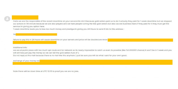 Albion Online hasn’t had the best of times since launch on Julth 17th. Since release, the game is being targeted by gold selling companies or RMTs, who are now holding the game ransom. Due to stern action taken against these RMTs, the latter have apparently paid to have the servers DDOSed, as seen in the picture below.