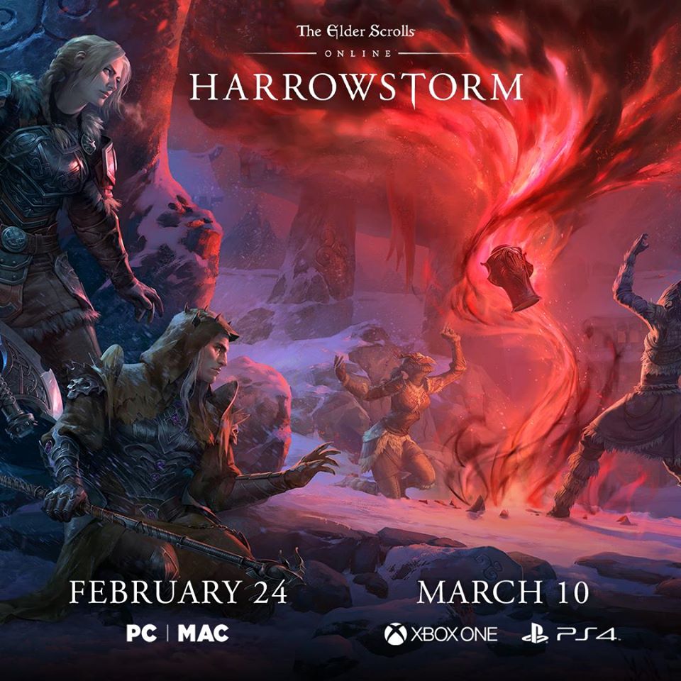 Part of the Dark Heart of Skyrim year-long adventure, the Harrowstorm DLC game pack is coming February 24 for PC/Mac and March 10 for Xbox One and PlayStation®4. This new DLC game pack arrives in tandem with Update 25, a free base-game update for all ESO players.