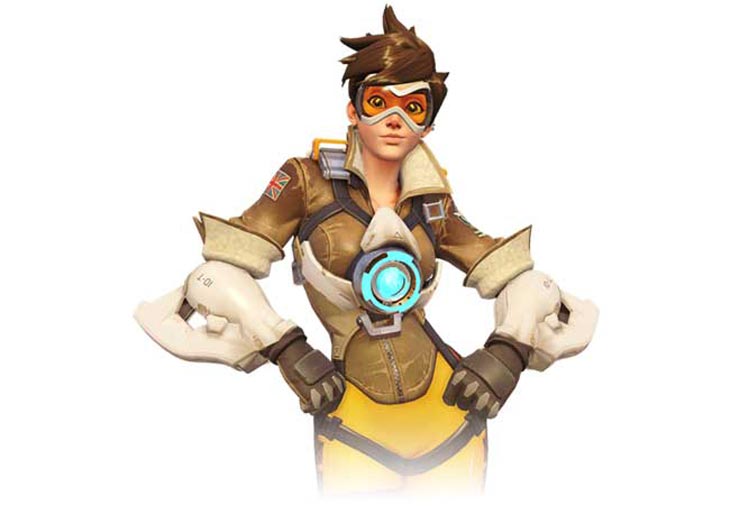 Toting twin pulse pistols, energy-based time bombs, and rapid-fire banter, Tracer is able to “blink” through space and rewind her personal timeline as she battles to right wrongs the world over.