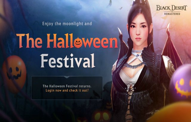 Black Desert Online players can enjoy Halloween starting today. Four pre-events are running until November 6 to celebrate this special occasion. Adventurers can find the Halloween boss Spook wandering around and dropping items once they challenge him to combat. 10 Black Fabrics can be collected and exchanged for various Design Bundles for Craftable Costumes. Completing a quest from the Pumpkin Ghost will bring Adventurers 100 Energy and 150 Contribution EXP. Moreover, Adventurers who try challenges for up to 3 hours can get 5 Halloween Coins (1 hour), 1 Halloween Candy (2 hours), and 1 Halloween Pouch (3 hours). Halloween Coins can be exchanged for various items such as Cron Stones, Sharp Black Crystal Shards, and Fine Accessory boxes, whereas a Halloween Candy and a Halloween Pouch can be combined for 1 Halloween Candy Pouch filled with random rewards including Resplendent Alchemy Stones of Destruction and Urugon’s Shoes.