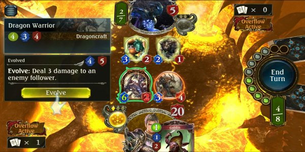 How the game stands out among competitors such as Hearthstone and Magic The Gathering is through its gameplay. There are a couple of mechanics within the game that takes digital card playing to the next level. The first, is the Evolve mechanic. During a match or duel, players get Evolve orbs that can be used to Evolve a follower card into a more powerful version. Each player can only do this twice per match, so there’s an element of quickfire strategy involved and players must know when the best time is to use them.