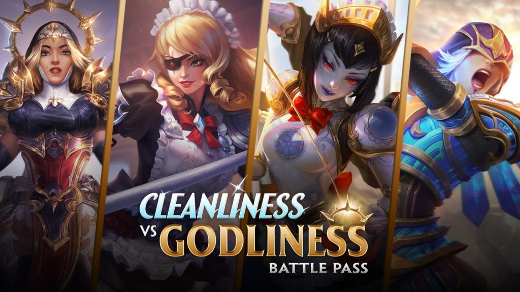 With 60 levels of rewards, the Cleanliness vs. Godliness Battle Pass also grants loads of in-game currency—Gems, Viewer Points, and Odyssey Points—and dozens of thematic cosmetics such as Avatars, Loading Frames, Death Stamps, and more.