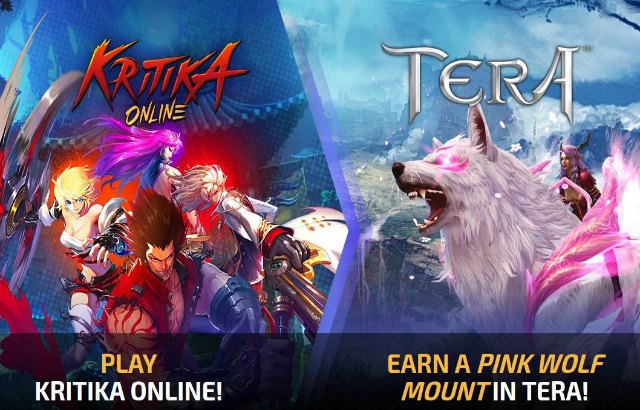 Current TERA players who reach level 20 in Kritika Online will be given a redeemable code of a mount called Lady. It’s a pink spirit wolf ground mount with a movement speed of 280 to use in TERA.