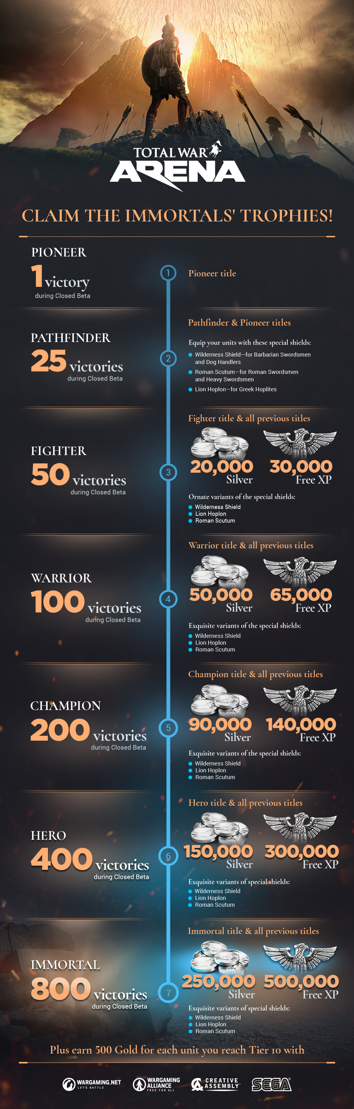 Players currently playing the Closed Beta of Total War: ARENA can get a massive boost for their accounts and earn unique rewards through The Immortals program, a special limited time event that allows players to rack up XP and Silver bonuses, as well as customisation options for their units. Everyone can join in on The Immortals program from February 2 at 10:00AM UTC until February 19 at 12:00 UTC.