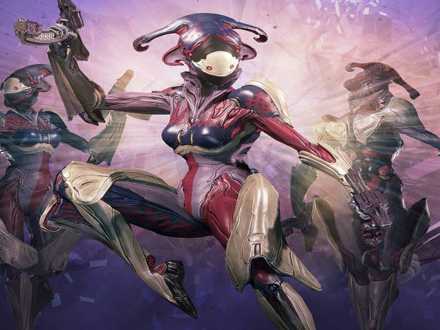 Possibly my favorite frame, Mirage is a clown themed warframe. Focusing on damage dealing and confusing the enemy with clones. Mirage is a fast frame with high damage dealing potential. To accomplish this role you mostly use two abilities from Mirage’s kit. The first ability is Hall of Mirrors. Hall of Mirrors creates four clones around mirage which mimic her actions and deal a portion of her weapon damage. The clones also draw enemy fire. The second ability is Eclipse. Eclipse is an activated passive with moderate duration. While Eclipse is active Mirage deals extra damage while standing in light and takes less damage while standing in a dark area. The combination of these abilities make mirage a damage dealing monster, and a joy to play.
