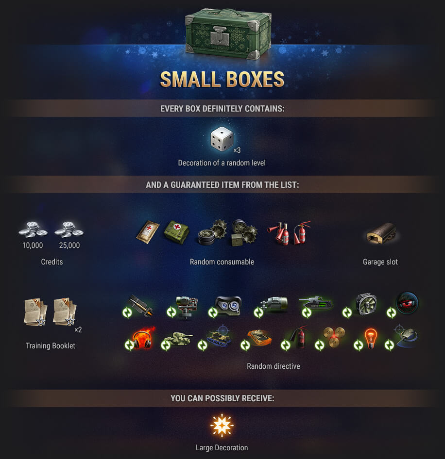 - Holiday Ops vehicles will continue to enjoy their slot bonuses from January 11 at 08:00 (UTC+1) until almost the end of January. In addition, they will receive the highest bonus to credits you achieved during the event.